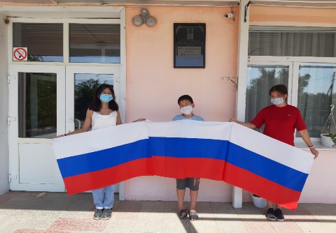 Ко дню флага России в школе прошел флешмоб "Цвета Российского флага"