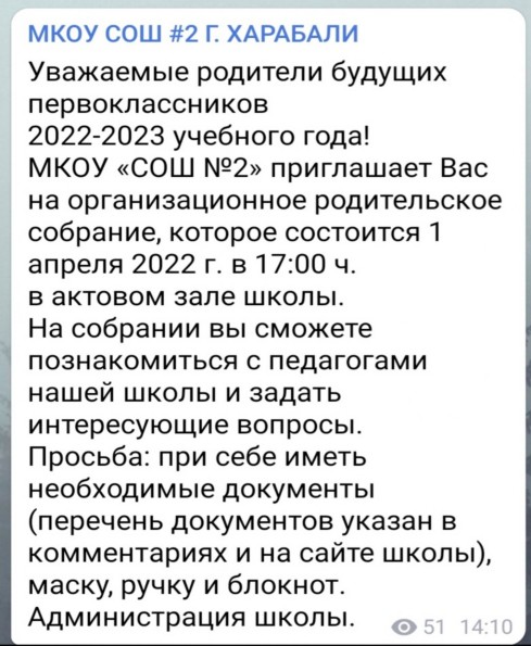 8 апреля 2021 с 18.00 до 19.30 состоится региональное родительское собрание под руководством ответственного секретаря Координационного совета Национальной родительской ассоциации, кандидата исторических наук, Гусева Алексея Владимировича, члена коллегии Министерства просвещения РФ.Задачи родительского собрания – повышение мотивации участия родителей (законных представителей) в воспитании, разъяснение новаций и инициатив в сфере обучения и воспитания, обсуждение с родительской общественностью регионов ключевых проблем системы образования, обеспечение обратной связи в рамках государственно-общественного управления образованием. В связи с вышеизложенным просим 08.04.2020 в 18-00 подключится представителей родительской общественности от общеобразовательных организаций к мероприятию по ссылке https://trueconf.platforma.institute/c/7767844684. Программа прилагается .