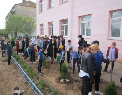Сегодня в рамках проекта "Красота вокруг нас" учащиеся школы совместно с родителями и учителями приняли участие в озеленении школьного двора.